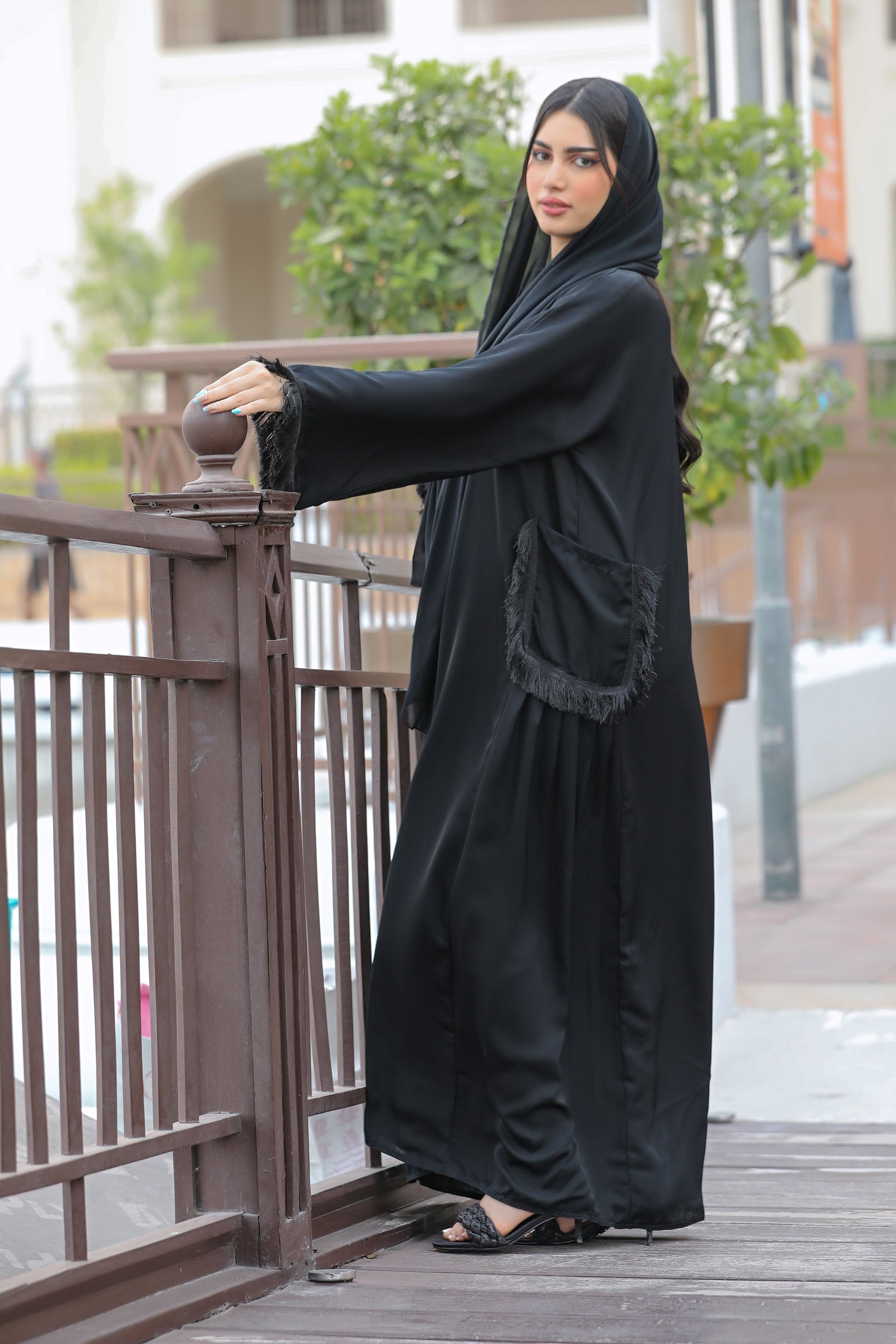 Elevate your style with this daring luxury abaya featuring practical pockets for effortless elegance and convenience. Designed for the confident woman who embraces both tradition and modernity, it combines exquisite craftsmanship with a bold touch, making it a must-have statement piece.